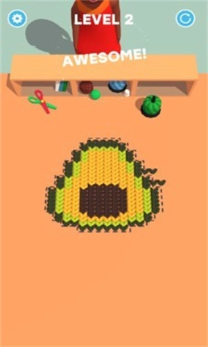 1、游戏的闯关过程分为两部分,第一部分我们需要将下方的各种颜色毛线收纳到对应颜色的柱子上。