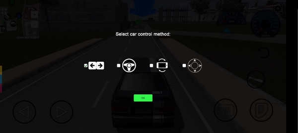3、这里是让玩家选择驾驶操作的方式,有左右按键、方向盘、陀螺仪、摇杆四种驾驶方式可选