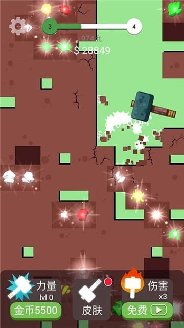 在游戏中获取金币,永久升级铁锤属性,开局就是最闪亮的星~