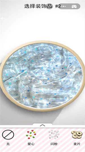 1、进入制作界面后,先选择基础史莱姆材质,接着从爱心、闪粉、麦片等装饰品里挑选心仪的样式,然后逐步添加这些装饰品并调整它们的位置。