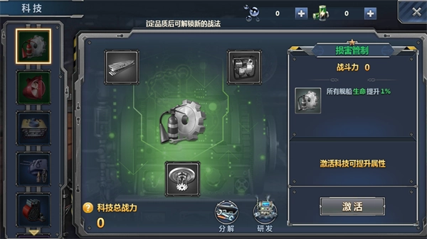 科技系统可对全体舰船的属性同时进行提升,是游戏内非常重要的养成系统。科技的养成方式如下:
