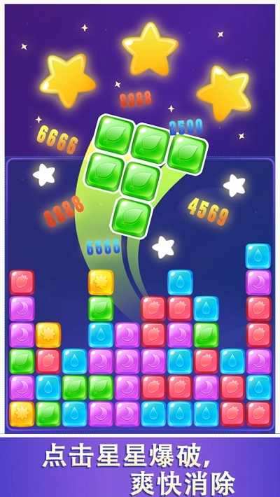 2、【玩法简单】休闲点消玩法,只要点击相邻的同色星星即可消除得分,操作简单好上手,是轻松益智小游戏的首选;
