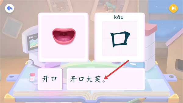 2、在新字学习环节点击【口】字卡片,开启该汉字的认-读学习流程。