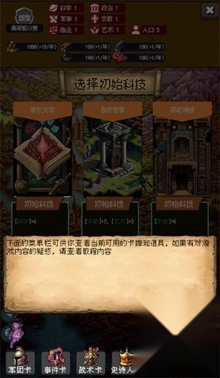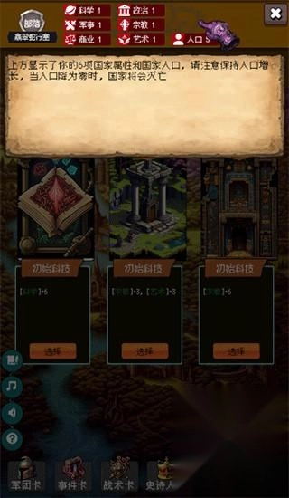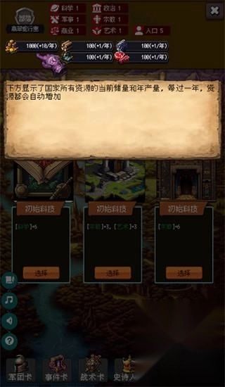 3、军团卡:军团卡非常重要,是你的国家在面对敌人时的主力。每隔10年,其他势力就会入侵你的国家,你需要使用军团卡来击败入侵者,否则你的领土和人口就会消失。