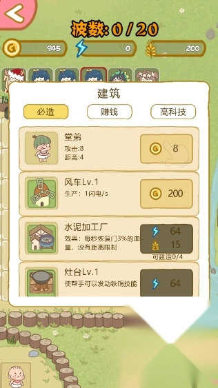 6、游戏内完美需要花费金币建造不同的角色、建筑防御大鹅的攻击,建筑一共分类必造、赚钱、高科技三种类型