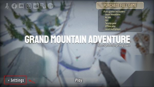 1、先启动grand mountain游戏,然后点击左下角的settings选项;