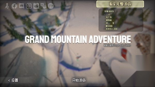Grand Mountain也叫高山冒险,是一款采用3D技术制作的滑雪模拟游戏。在游戏里,玩家能以第一人称视角体验惊险刺激的滑雪乐趣,还可以自由探索整个滑雪场,在山谷与雪地间尽情穿梭。游戏包含七座山脉以及多种滑雪场地,等待玩家解锁挑战,玩家也能够更换自己的滑雪装备,随时在手机上欣赏充满魅力的雪景风光。