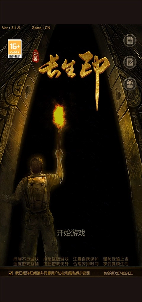 1、首先打开盗墓长生印最新版本,点击开始游戏。
