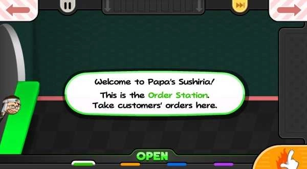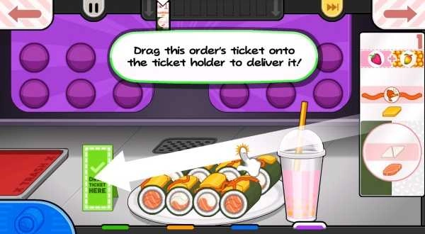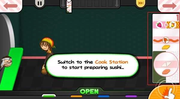 4、接下来就会为玩家介绍寿司店,点击右下角的按钮;进入订单站,顾客的订单都在这里。