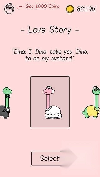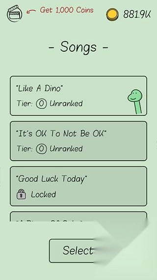 2、可以用金币给恐龙角色购买解锁好看的皮肤,选择完成后,点击“Select”就可以在游戏内展示了。