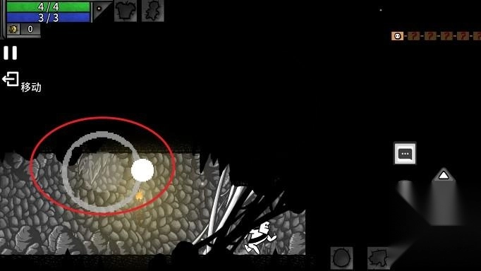 进入游戏主界面,左侧虚拟键位移动角色,不断前进后退