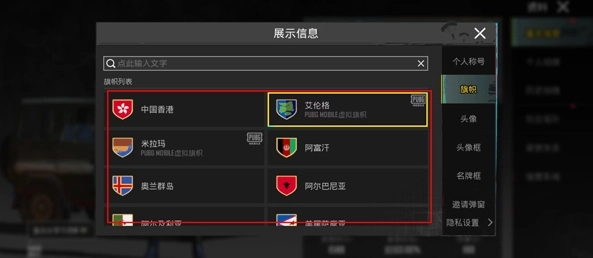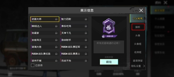 3、在展示信息区域,右侧第二个个人称号的下方设有一个旗帜选项。
