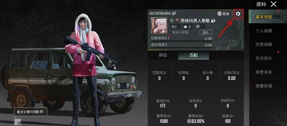 2、来到个人信息界面,找到右上角的设置按钮进入