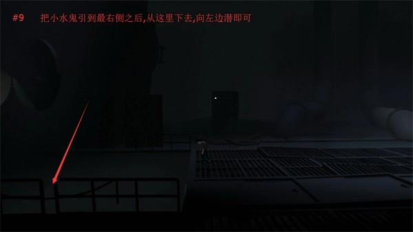 6、通过小男孩潜过裂缝开门,前厅跳过去的谜题之后,通过洪门后,记得向下潜,看到一个大方块向左撞开,就会出现入口。