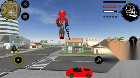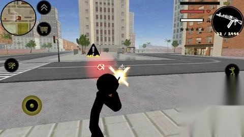 左侧移动、加速,右侧绳索,攻击(跳跃),跳跃,右上侧的武器更换以及血量、经验的显示都实时更新,一览无遗,凭借着大家自由的玩法,与其他帮派的人物进行交火,期间杀人能够获得经验,杀多了会产生星级,警察和其他附近角色会特殊照顾你对你展开火热的进攻,而如何存活,如何将其他人物击杀则是你所需要完成的任务。