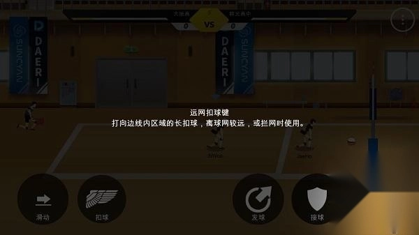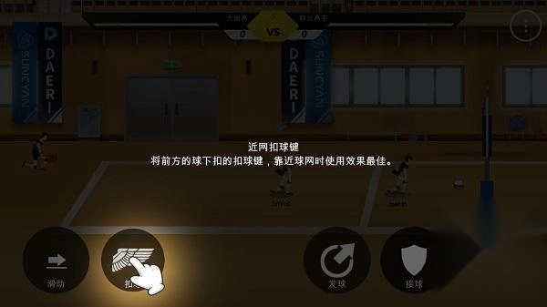 4、近网扣球键,将前方的球下扣的扣球建,靠近球网时使用效果最佳。