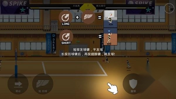 6、短按发球键,平发球;长按扣球键后,再按翅膀键,跳发球。