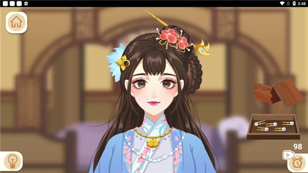 5、然后先插发簪,在贴上蓝色的花花到达指定的位置即可;