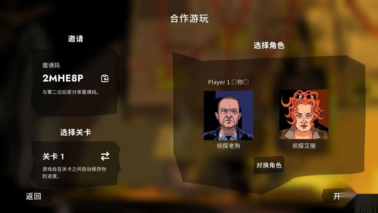 10、是你创建游戏,你需要选择角色与关卡。然后将邀请码发送给你的好友。然后点击开始。