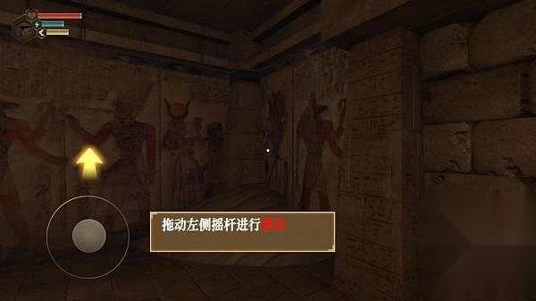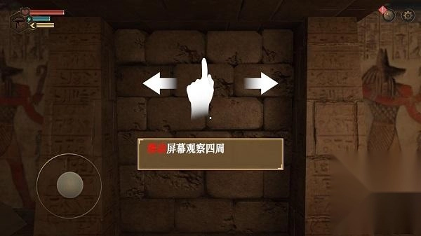 1、游戏开局会先简单介绍背景设定,等玩家进入金字塔后,核心玩法才正式启动,此时可通过滑动屏幕来观察周围环境。