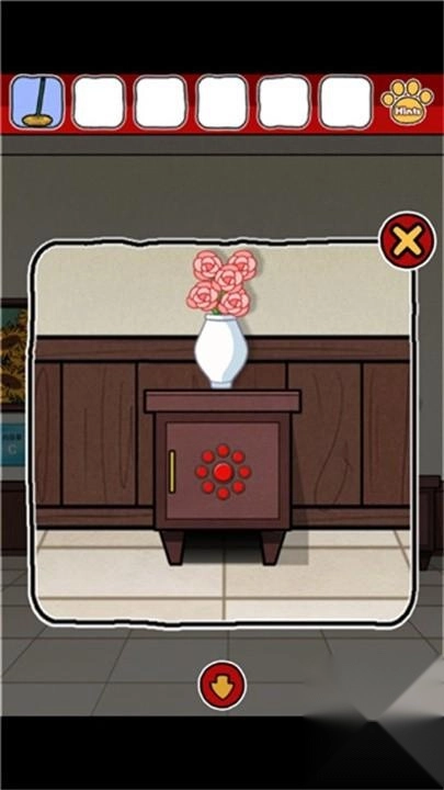 14.点击花瓶下面的柜子,用拖把找到耳环。