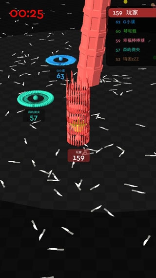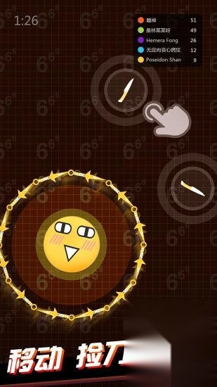 以在2分钟内看谁收集飞刀数量更多为准则,依靠遥感控制飞刀的行动路径,防御状态下飞刀数量多时会以塔的形式叠加起来,给人更为立体的感觉。