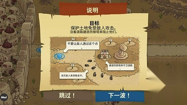 3、我们的目标是保护土地免受敌人攻击,建造防御塔来守卫道路,消灭敌人获得金币;