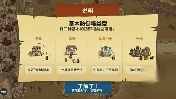 5、基本防御塔类型有四种,分别是弓兵、兵营、法师公会、火炮;