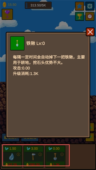 初期主要通过点击让水滴不断落下击打石头,每次命中都会获得金币,前期金币积累较慢,但请保持耐心,坚持点击是关键。