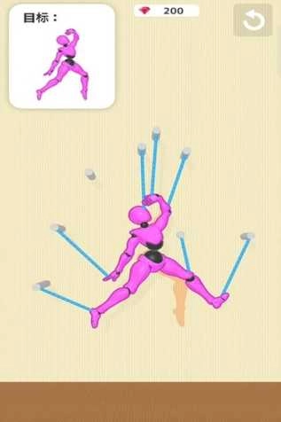 1.精准剪切:玩家需要根据目标姿势仔细观察绳子的分布位置,找准最佳的剪切顺序,使玩偶顺利摆出正确动作。