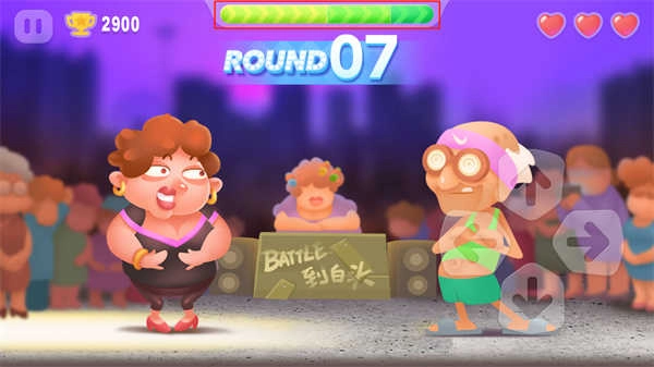 尬舞之王游戏运用全新的漫画Q版美术风格,结合了音乐与舞蹈的要素,玩家操作年长的大爷大妈,在关卡场景里开启一场舞王争夺战。每局游戏启动时,玩家有3颗爱心,要是连续成功模仿舞步,还能得到额外的爱心奖励。
