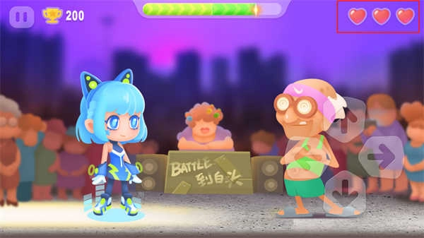 4、游戏上方还有一个倒计时,玩家越快完成尬舞获得奖杯越多,倒计时结束还没有完成尬舞玩家将失去一个爱心;