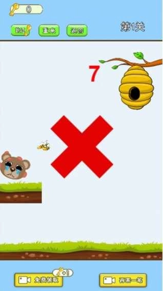 1、把新角色小熊和蜂巢里的蜜蜂隔离开,保护好娇俏可爱的小熊。