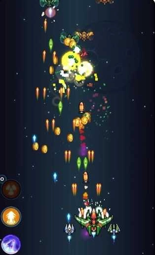 1、在战斗中,玩家可以收集金币和宝石来升级飞船性能,解锁更强力的武器装备。