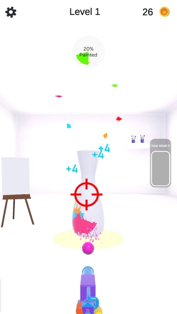 2、通过射击的方式来打破所有的平衡,收集非常多的颜料。