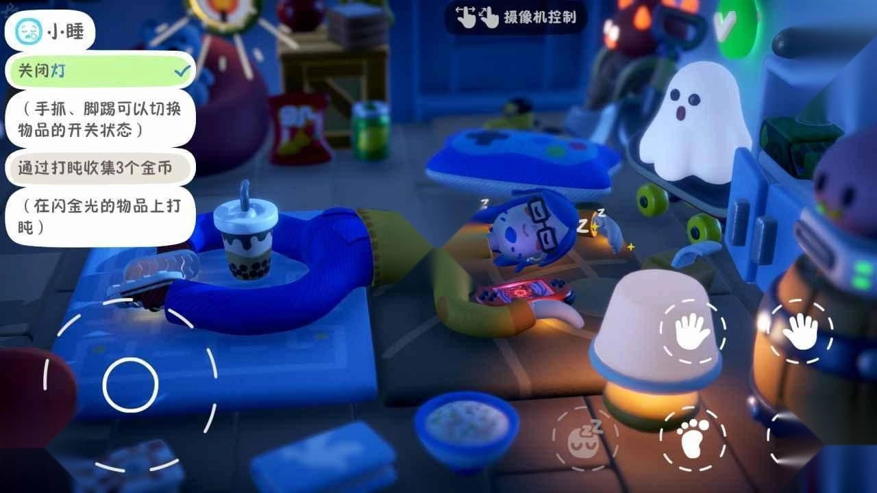 4、独特的物理操作体验。调整疲劳角色的手脚动作,在睡意中趴着,拿起东西等,每个动作都对疲劳角色具有挑战性。