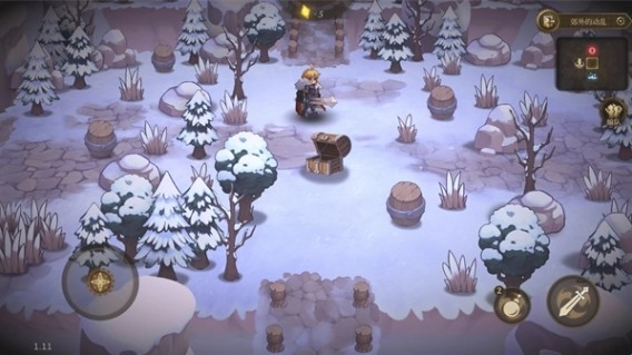 3、进入地图后左边控制角色的移动,右边是进行攻击,当遇到敌人后会触发战斗。