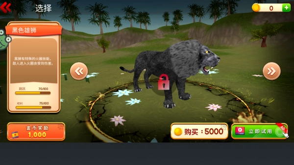 2、涵盖多种丛林狮子野兽供玩家解锁使用,每一款动物的属性都不相同。