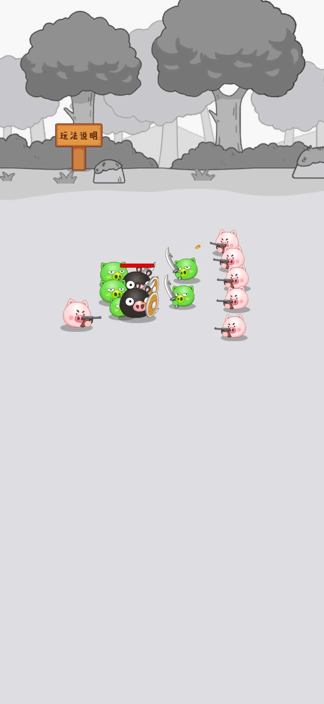 3、畅爽欢乐的游戏过程,合并猪头,升级兵种,尽情挑战。