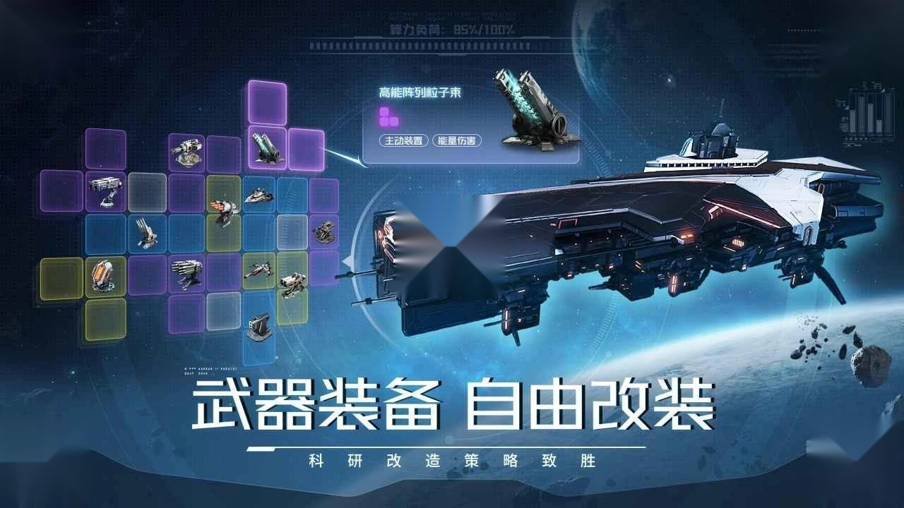 4.自由改装系统,玩家可以根据自己的喜好和战斗风格,自由改装宇宙舰队,定制战舰编队和武器配置。