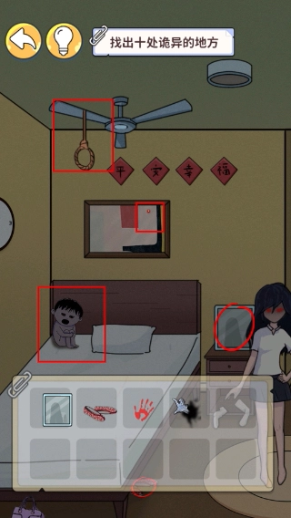 1、对房间里的床和电视区域进行检查,注意观察周边是否存在不合常理的物品或细节,循序渐进地排查诡异的地方。