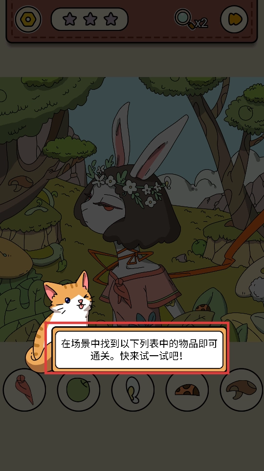 1、查看底部的物品清单,在场景里找出对应的物品,全部找到就能通关。