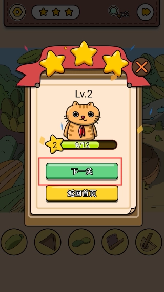 4、通关后,点击【下一关】继续挑战新关卡。