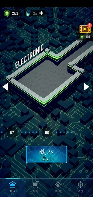 第一大关“电子城”:通关流程和原来一样,只是最后一小关换成了机器人模式(这个模式对所有关卡都适用)。一般新手建议用初始球,要是你是大师级玩家,闪现球随便用就能过,毕竟这关没有刺盾,不过得小心密集的子弹攻击。机器人模式里的敌人是机关枪机器人,它们的子弹很笨拙,只要持续移动走位,或者通过进进退退的方式消耗敌人就行。