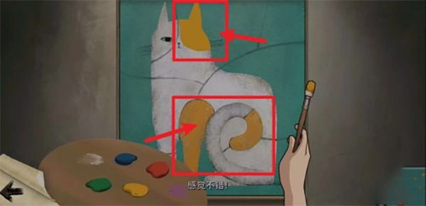 3、然后在把画板上的猫咪涂色,并获得新的线索;