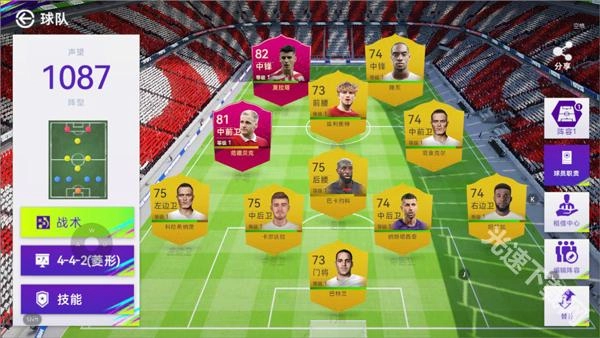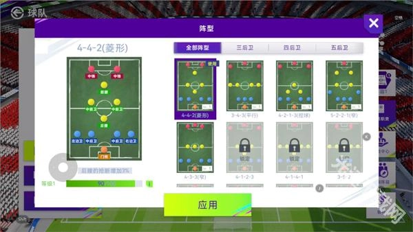 424阵型的特点是前场采用双边锋搭配双前锋的组合,中场由两名球员承担攻防核心任务。和其他配备多名中场的阵型相比,424的中场区域确实存在一定的空间,但只要这两名中场球员能力出众,就能有效弥补中场的短板。后防线则延续了常规的四后卫配置。该阵型整体定位为进攻型体系,正如“最好的防守就是进攻”所言,其综合强度处于适中水平,若能合理运用,也会成为极具竞争力的阵型选择。
