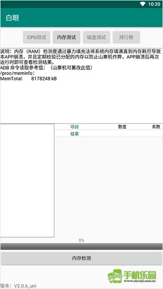 2、内存测试功能:借助填充运行内存的方式,检测设备实际具备的运行内存容量。