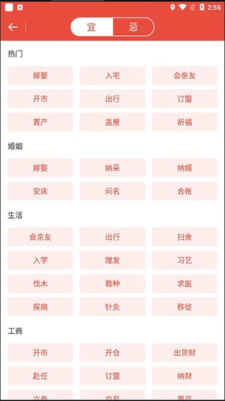 5、有多种热门事件可以择吉日,满足用户的不同需求。