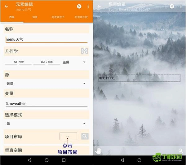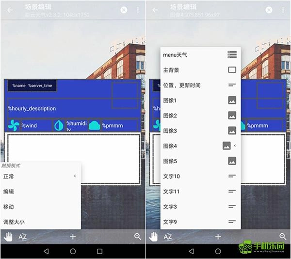 右下角的放大镜按钮可用于切换场景状态,具体包括:1. 设置场景与手机屏幕的相对布局;2. 设置场景内的元素。