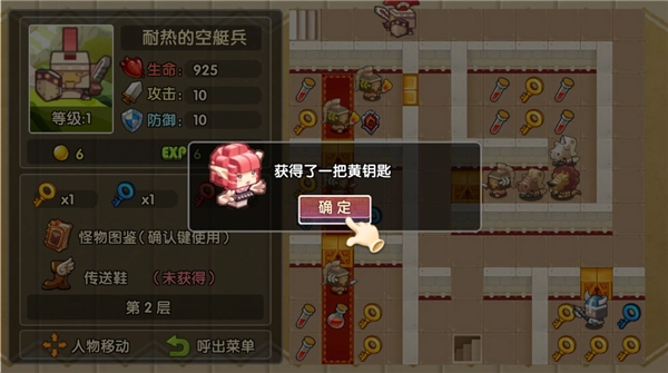6、能看到这一层需要黄色钥匙才能打开门,得去地图里找到黄色钥匙,用它开启大门继续探索。